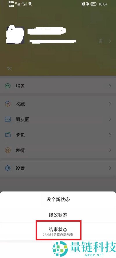 第二步:在点击之后下方会弹出选项,我们需要点击下方的【结束状态】,点击取消迎新春状态,就可以立马取消状态。