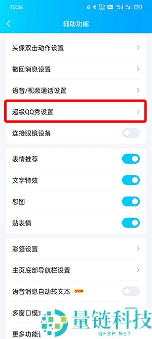 3、再点击辅助设置中的【超级QQ秀设置】(如图所示);