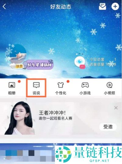 2.在好友动态的页面中,找到关于说说的功能选项,点击并进入到说说的页面中。