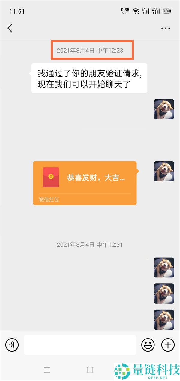 5、最后看到通过验证请求这句话后,上面的时间就是添加好友时间。