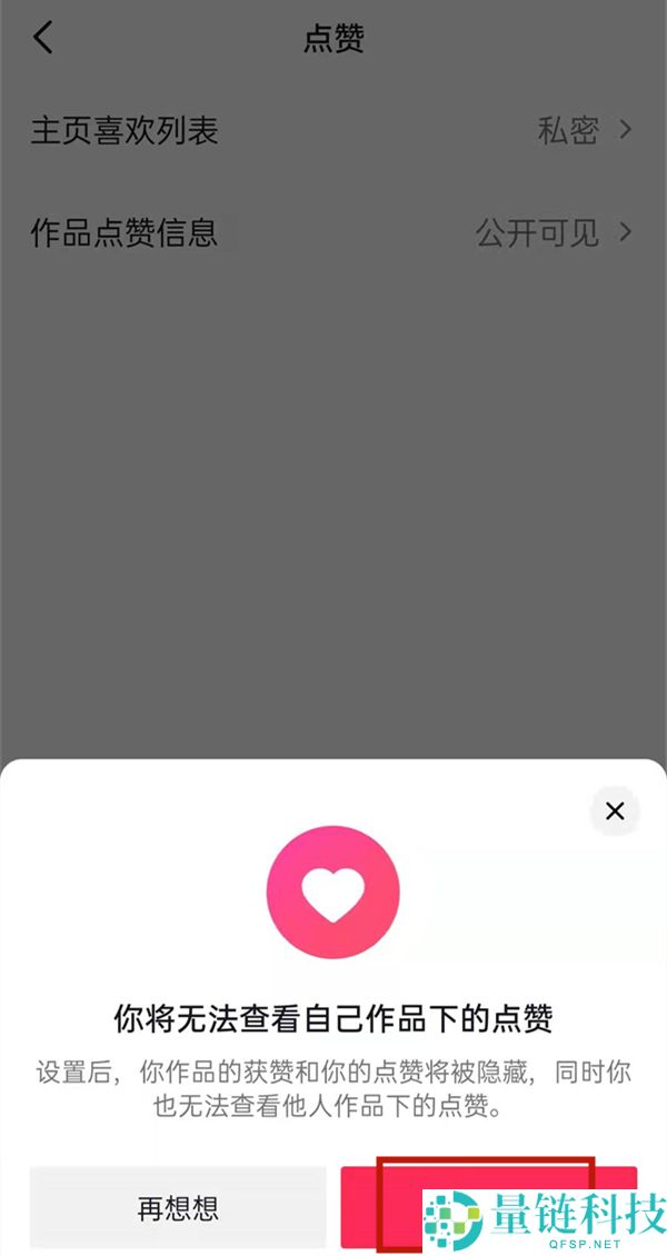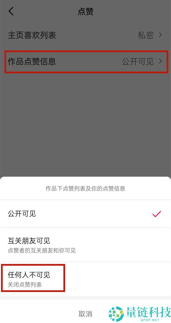 4、点击作品点赞信息,选择任何人不可见。