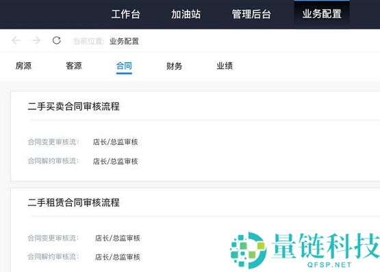 5、这是合同管理功能,可以在软件查看二手买卖合同审核流程,合同变更审核流:店长/总监审核,二手租赁合同审核流程。
