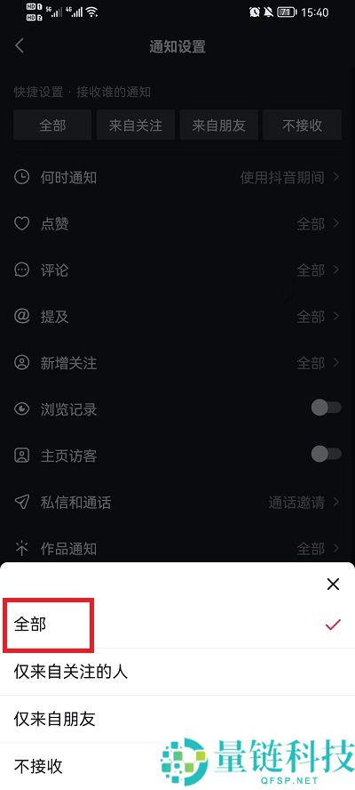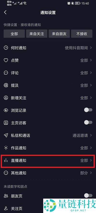 5、最后只需要设置为【全部】就可以接收直播提醒。