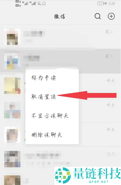 2、在弹出的界面,点击【取消置顶】的按钮,然后就可以完成其中的关闭教程。