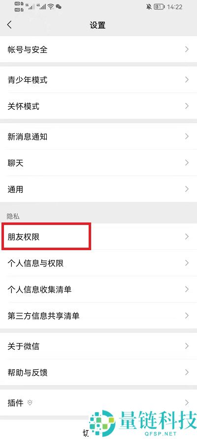 3、然后在设置界面中,就可以找到需要的【朋友权限】;
